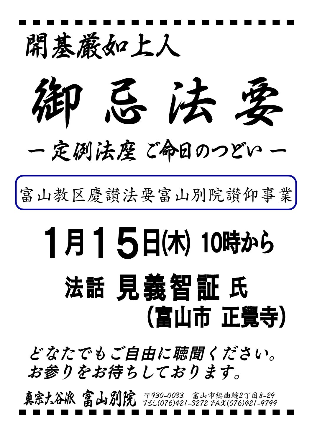 1月15日(木)午前10時から開基厳如上人御忌法要を厳修いたします。